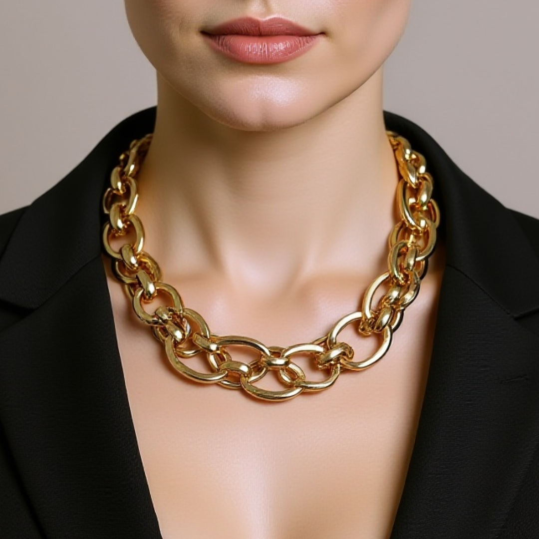 A timeless masterpiece that radiates strength and sophistication. The Eternal Bond Necklace features bold interlocking gold links, symbolizing unity, resilience, and enduring connections.